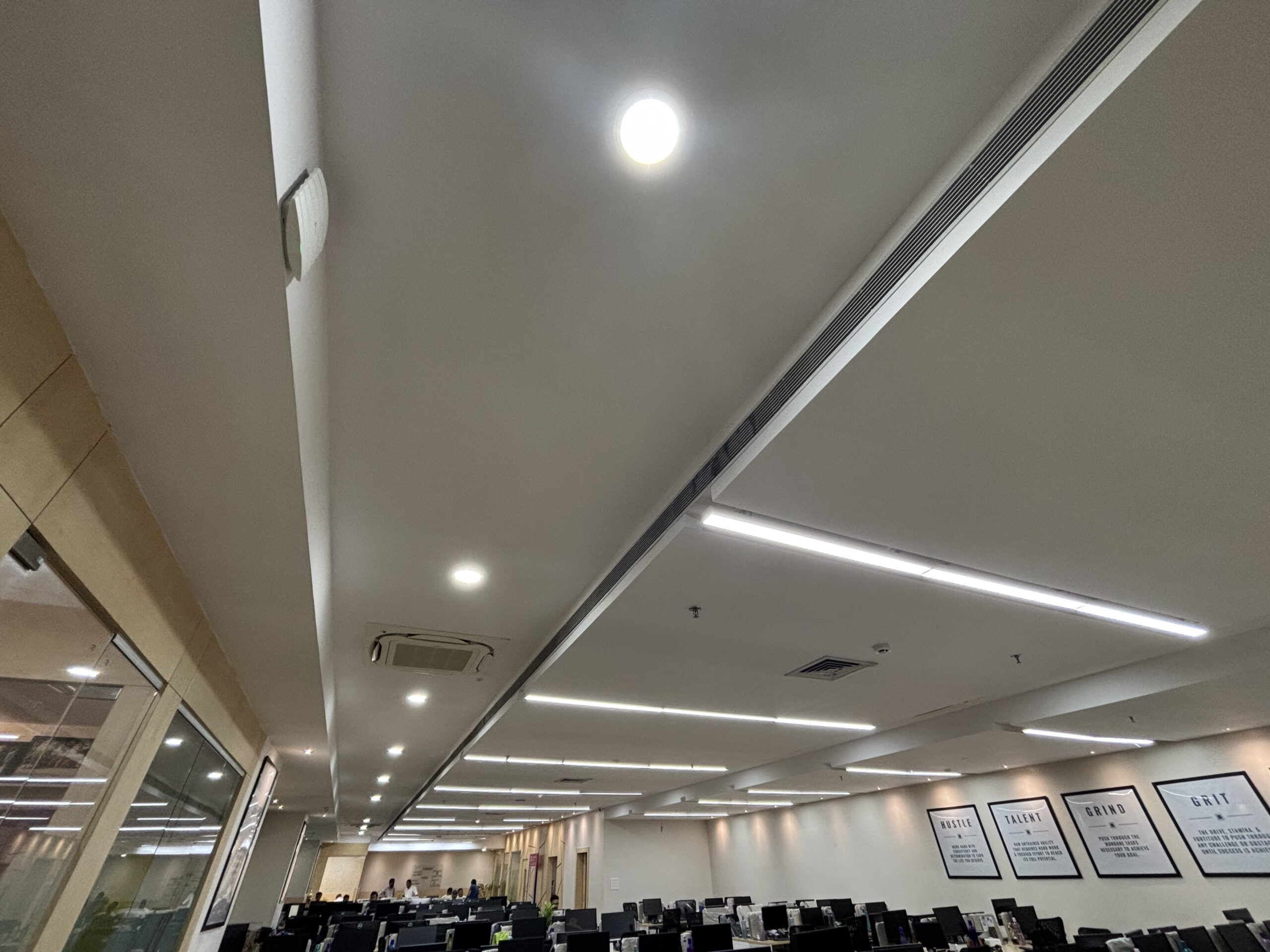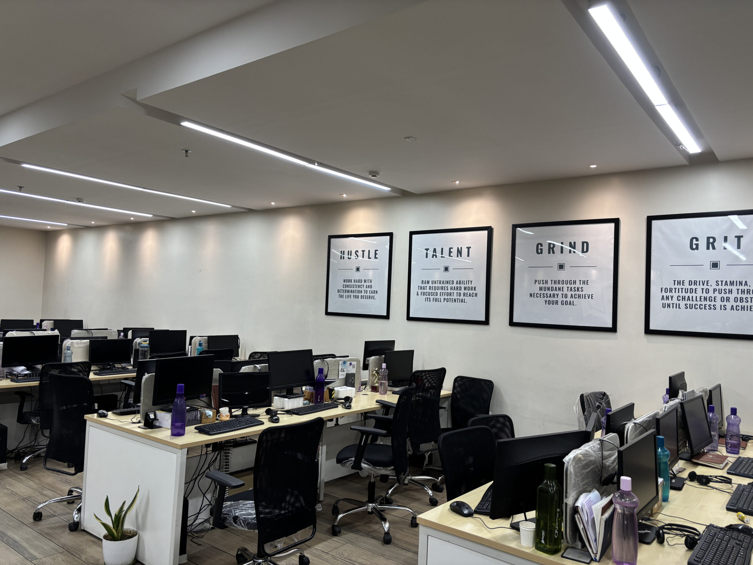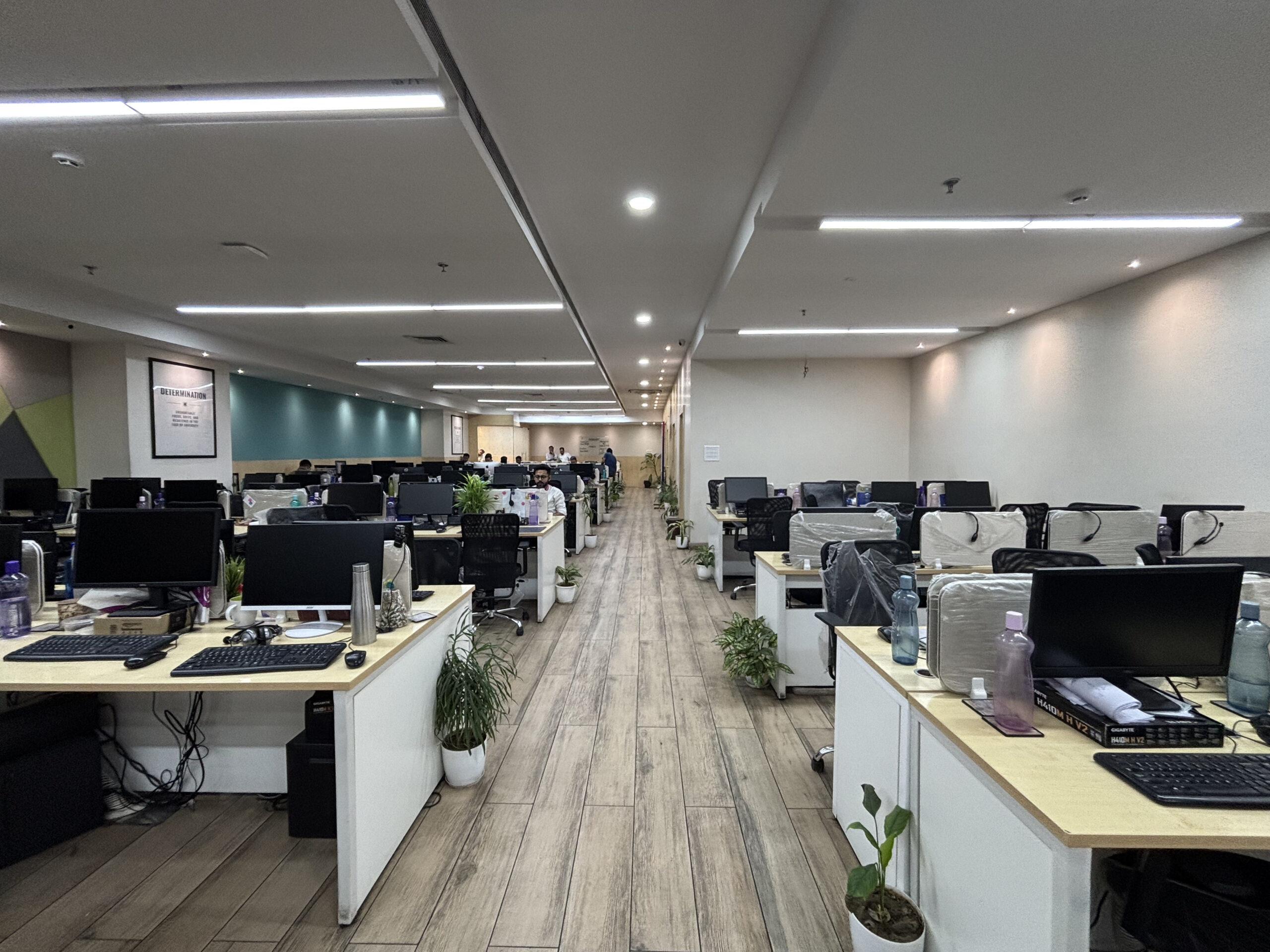 As a leading interior design company, our team had the opportunity to transform the office space at Weavers Web Solutions in Salt Lake into a functional yet aesthetically pleasing environment. The goal was to create a simplistic design that balanced practicality with style. For the reception area, we designed a welcoming setup with comfortable guest seating and a dedicated space for an aquarium, adding a touch of tranquility. To enhance brand visibility, we ensured the reception desk was well-illuminated, drawing attention to the company’s identity. Every element was carefully planned to ensure a seamless blend of functionality and elegance, creating an office space that is not just efficient but also visually appealing.